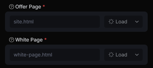 2. Enter your Offer/White pages, which can be either an absolute file path or a link, depending on the integration method. Then choose the content display method: